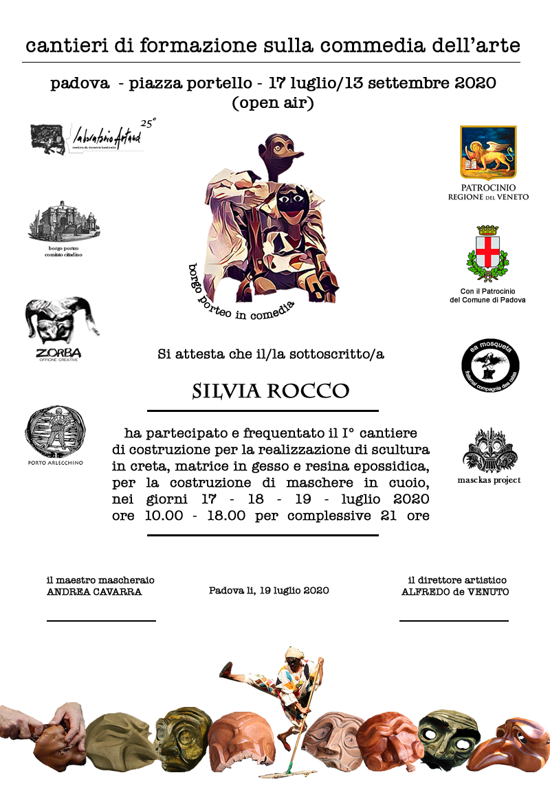 …un fine settimana full-immersion in un percorso teatrale di formazione attoriale guidato dall’unica attrice-donna Arlecchino in Italia e al contempo mascheraia professionista, sulle pratiche, tecniche e movimento di maschere e di attori/attrici, che ha ricevuto riconoscimenti nazionali ed internazionali e manca dalla città di Padova da 13 anni. Il corso prevede una quota d’iscrizione e i posti disponibili sono limitati. Le iscrizioni/prenotazioni saranno accettate in ordine cronologico, fino ad esaurimento dei posti, secondo le indicazioni che verranno inviate ai richiedenti attraverso la form qui sotto o telefonicamente .