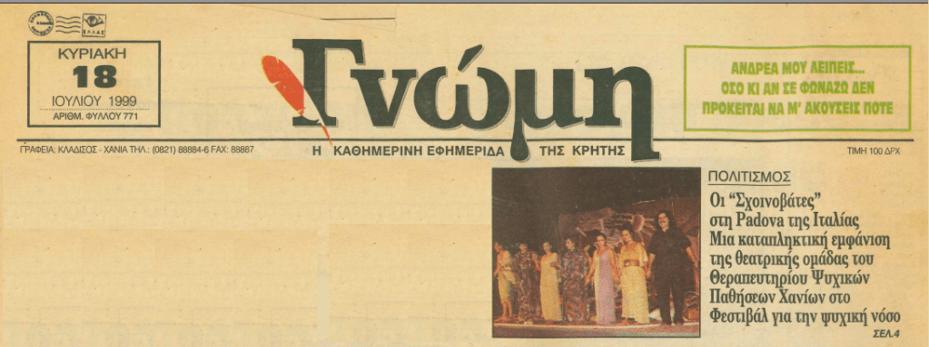 fersefoni shinovates domenica 13 giugno 1999 – Bastione AlicornoMental Hospital of Chania – Crete – GreeceFERSEFONI – Teaching the absence Condividi: Fai clic per condividere su X (Si apre in una nuova finestra) X Fai clic per condividere su Facebook (Si apre in una nuova finestra) Facebook Mi piace Caricamento...