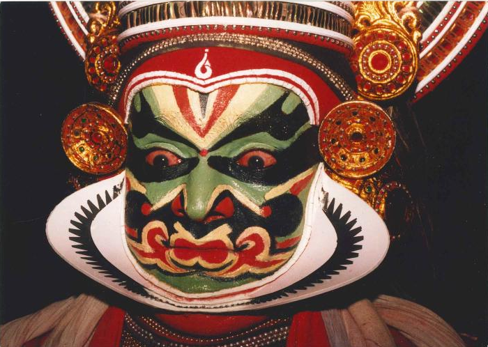 Il Khatakali è il classico teatro-danza dell’India del Sud. Un’arte di estrema energia che fonda in sé letteratura, teatro, danza e musica. I suoi movimenti vitali e armoniosi sono basati sul mimo, sul simbolismo e su magnifiche e raffinate espressioni teatrali. Il potere del Kathakali deriva dalla combinazione del contenuto emotivo delle storie degli dei Hindu, con la bellezza e la grazia della recitazione e della danza. Il Kathakali viene generalmente portato in scena da uomini e ragazzi, che hanno avuto un lungo addestramento fisico con esercizi tradizionali in antiche palestre, tali da rendere i loro corpi flessuosi e resistenti. Praticano inoltre un lungo tirocinio in “abhinayam” dove le emozioni vengono descritte attraverso movimenti facciali accompagnati da mudras, che rappresentano un completo linguaggio gestuale, e mette l’attore in grado di interpretare la storia e di comunicare con gli altri protagonisti e con il pubblico. I movimenti, i gesti, le espressioni facciali sono molto elaborate. Gli occhi, le sopracciglia, il mento, le labbra, il collo, tutto ha una funzione separata. Anche il più piccolo movimento del viso ha un suo intrinseco significato ed esprime un particolare sentimento od emozione. Nel Kathakali che significa “storia recitata”, gli attori rappresentano caratteri mitologici degli dei, uomini, eroi e demoni; scene d’amore, di battaglia, imprese eroiche, situazioni liriche, eccessi d’ira, cerimonie religiose che si fondono ad intrecciare il “testo” di una storia in cui si affermano sempre le migliori qualità dell’uomo e la presenza dell’Assoluto. I cantanti narrano la vicenda, mentre l’atore, accompagnato da percussioni e cembali, la interpreta servendosi delle mudra, descrittivo e simbolico movimento delle mani e delle dita, veri e propri ideogrammi per significare un oggetto,, un’azione, una parola; dell’abhinaya, cioè la rappresentazione delle emozioni e degli stati d’animo attraverso il volto; della danza (nritta). Forma cristallizzata della ricca tradizione teatrale del Kerala, culminante nell’arte della pantomima, la sua origine, circa 300 anni fa, proviene da antichi rituali e culti che si svolgevano nei templi hindu e le storie raccontate sono trattte dagli antichi poemi epici Mahabharata e Ramayana. Tradizionalmente lo spettacolo si svolge nel cortile di un tempio dal tramonto all’alba. Al centro della scena, una lampada ad olio bruci per tutta la notte a testimoniare la presenza delle divinità. Il sipario sta ad indicare il velo dell’illusione che avvolge tutta la realtà, ma che cadendo, dà la possibilità della conoscenza.