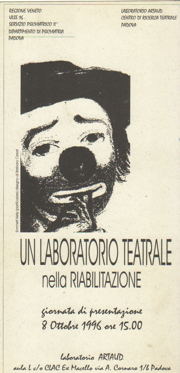 Uno spazio di frontiera che si è definito come ipotetica risposta all’insorgere di domande intorno alle reali possibilità del lavoro d’attore e della prassi teatrale, di realizzare un percorso di trasformazione e autosviluppo individuale e collettivo, in misura maggiore laddove tale percorso richiamava un’istanza terapeutica. Uno spazio di ricerca, nel quale lo spostamento d’interesse per l’oggetto teatro non già focalizzato sul prodotto, ma sul significato e sulla valenza del processo in termini assoluti, potesse produrre un movimento-cambiamento significativo nel soggetto partecipante. Una condizione in cui ri-cercare elementi conoscitivi e compositivi del teatro e del soggetto a disagio, sperimentando tecniche corporee, mentali e linguistiche come veicolo per approfondire diverse possibilità del sentire (e comprendere) e del comunicare (e quindi dell’essere).